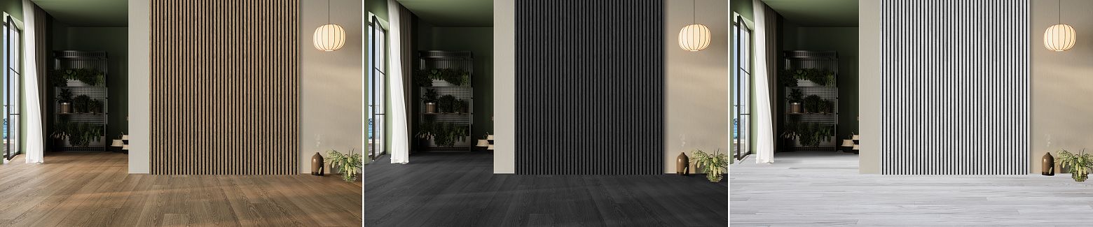 Our FN Acustico Digi wall elements consist of wood fibre slats that are either coated with foil (for laminate and vinyl flooring) or veneer (for parquet flooring) and digitally printed with the matching decor. Everything in-house - quality from a single source!